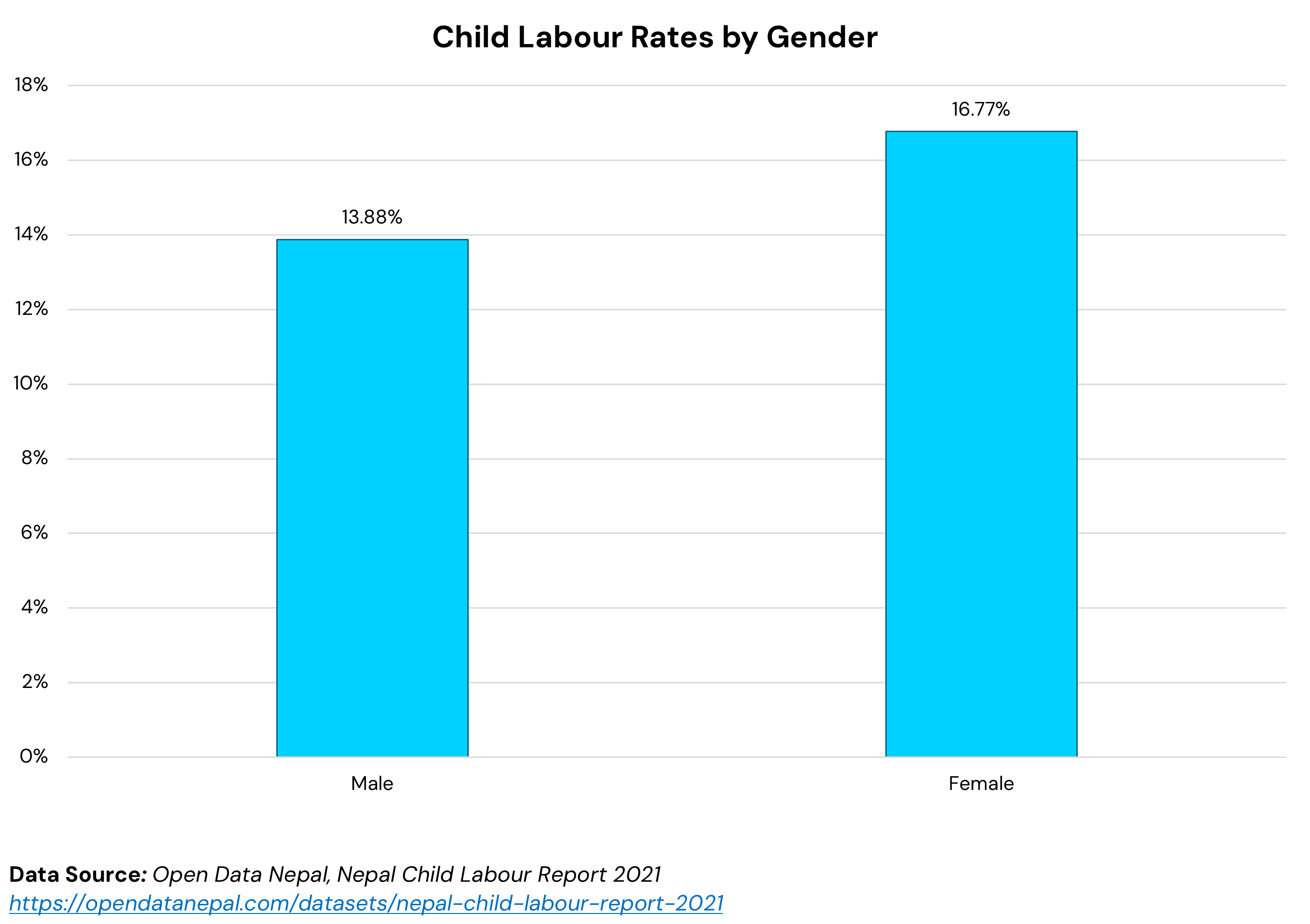 On the other hand, Bagmati, which is more urbanised and economically advanced, reports the lowest prevalence. Better connectivity, stronger public services, and more effective enforcement of child labour laws all contribute to this relatively lower rate.