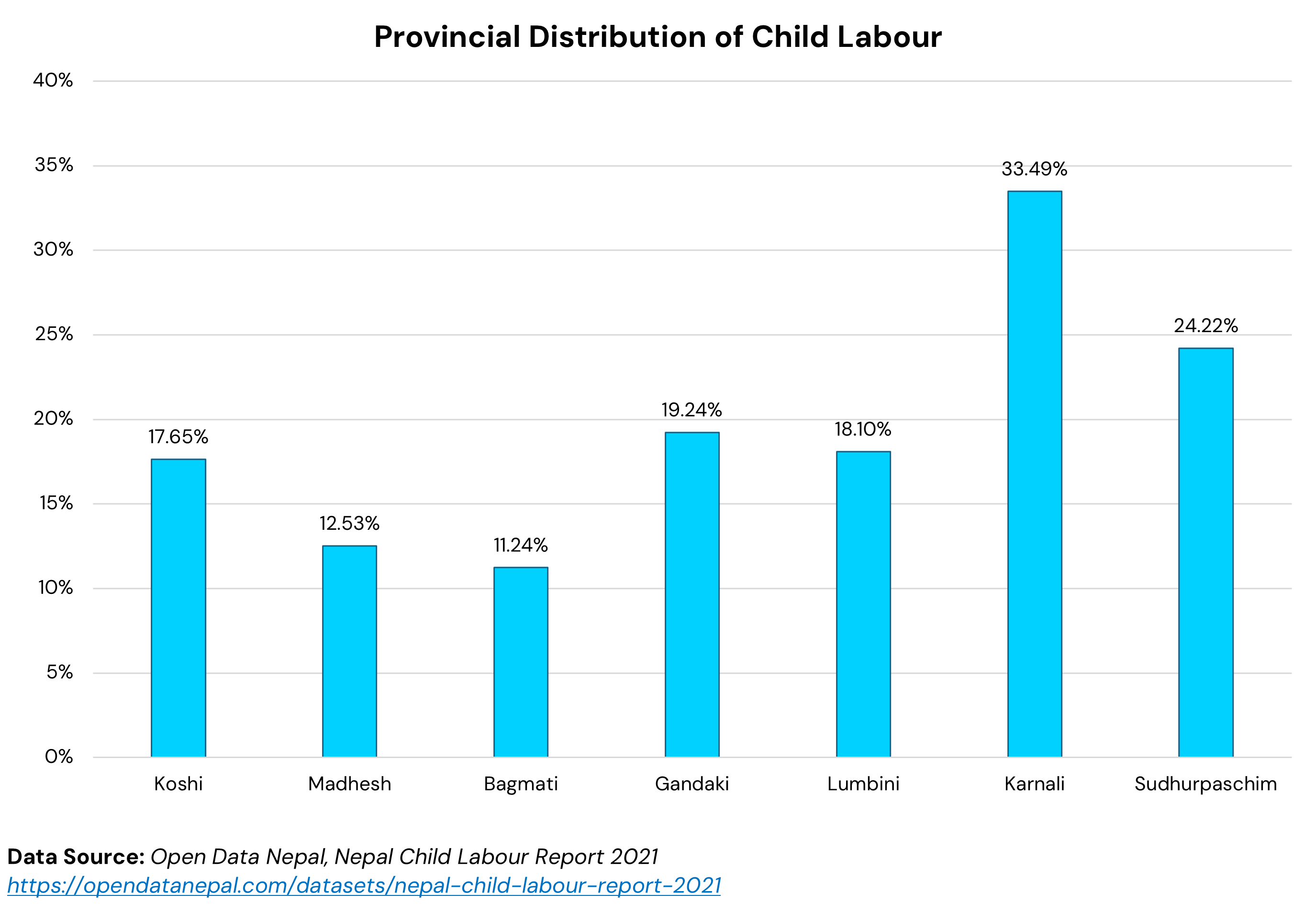 The least developed provinces, particularly Karnali and Sudurpashchim, record the highest child labour rates. These regions are often characterised by: